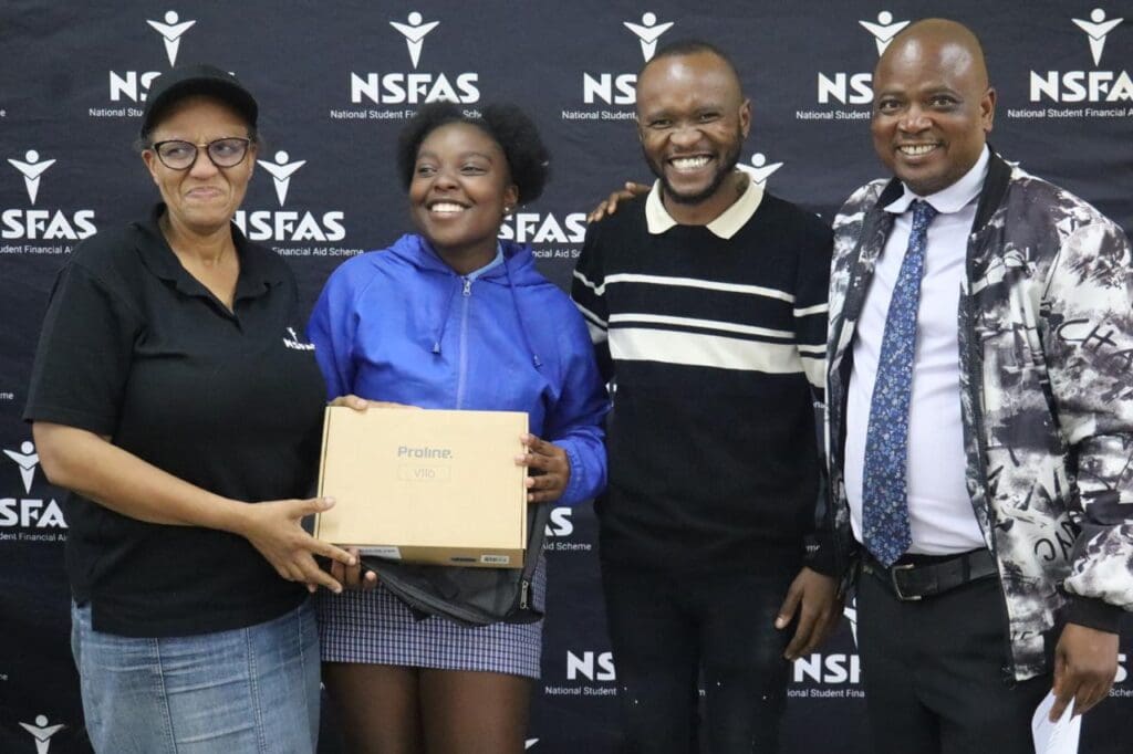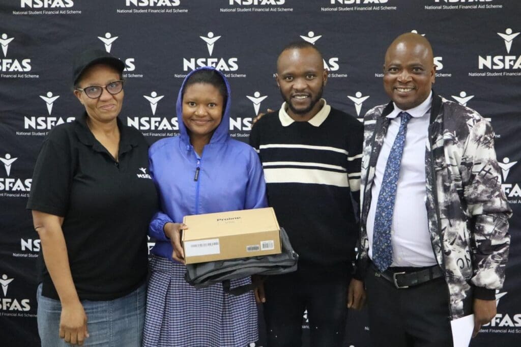 In addition to application support, the NSFAS team also donated five brand-new laptops to the top-performing learners at Thetha Secondary School in Drieziek 4 – a gesture aimed at encouraging academic excellence and improving digital access for learners.