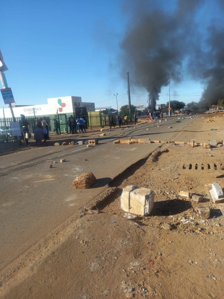 The protest disrupted access to Stretford Clinic, Eyethu Mall and other local businesses, forcing the closure of the clinic and relocation of patients, including those in the maternity ward.